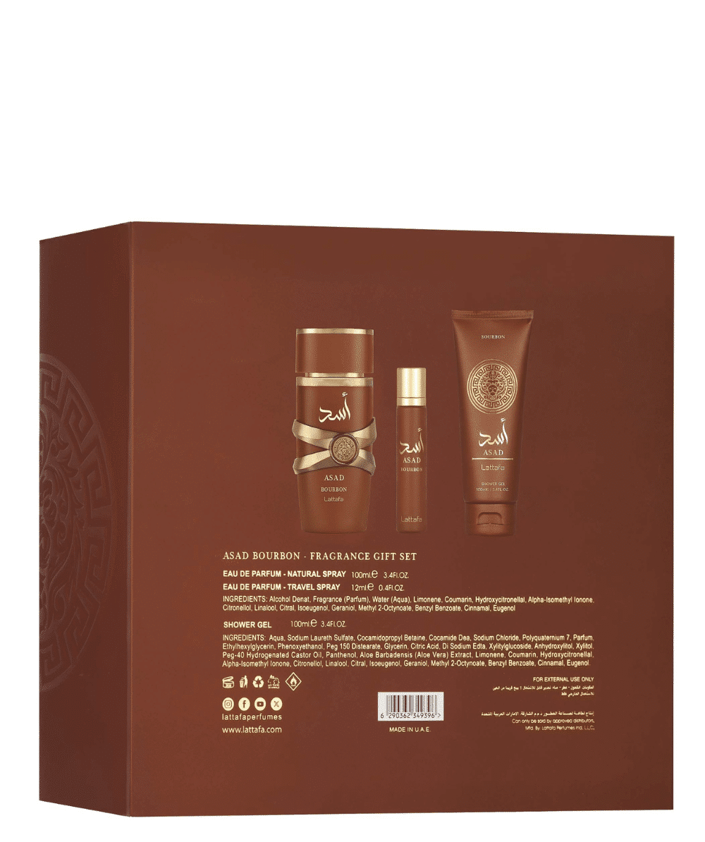 Coffret Lattafa Asad Bourbon – Parfum Dubaï gourmand, boisé & intense