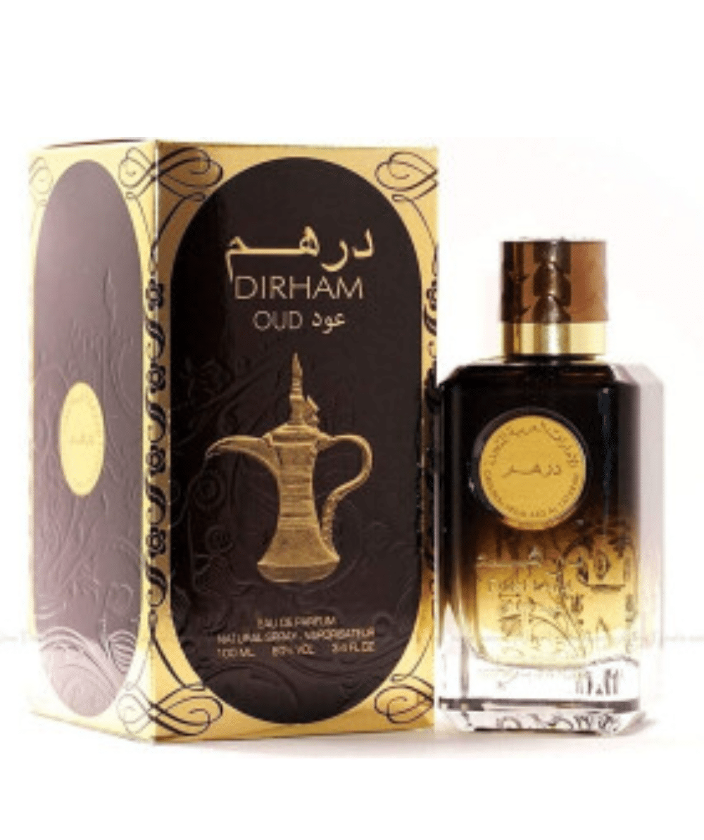 - DIRHAM OUD : Logé dans une très belle bouteille de 100 ml avec un bouchon élégant. Un choix merveilleux comme cadeau ou pour votre propre usage quotidien