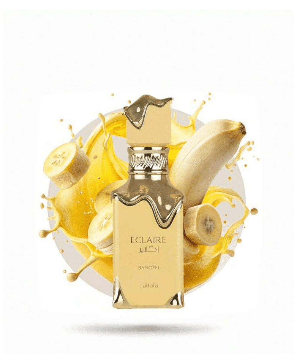 Découvrez Éclaire Banoffi de Lattafa, un parfum de Dubaï à la douceur exquise. Les premières notes dévoilent un mélange fondant de caramel, lait et sucre, pour une ouverture gourmande et réconfortante.