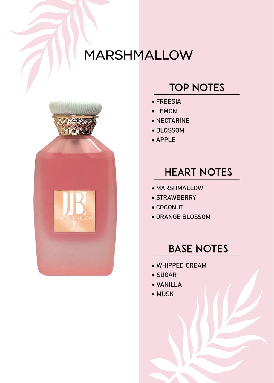 Marshmallow de JB Fragrance est une véritable gourmandise olfactive. Ce parfum de Dubaï délicieusement sucré évoque les souvenirs tendres de l’enfance, tout en révélant une sensualité moderne et féminine.