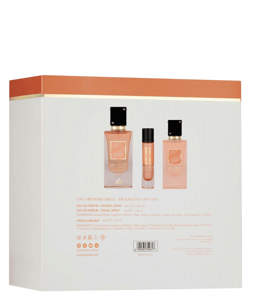Coffret Lattafa Ana Abiyedh Coral – Parfum Dubaï frais, fruité et exotique