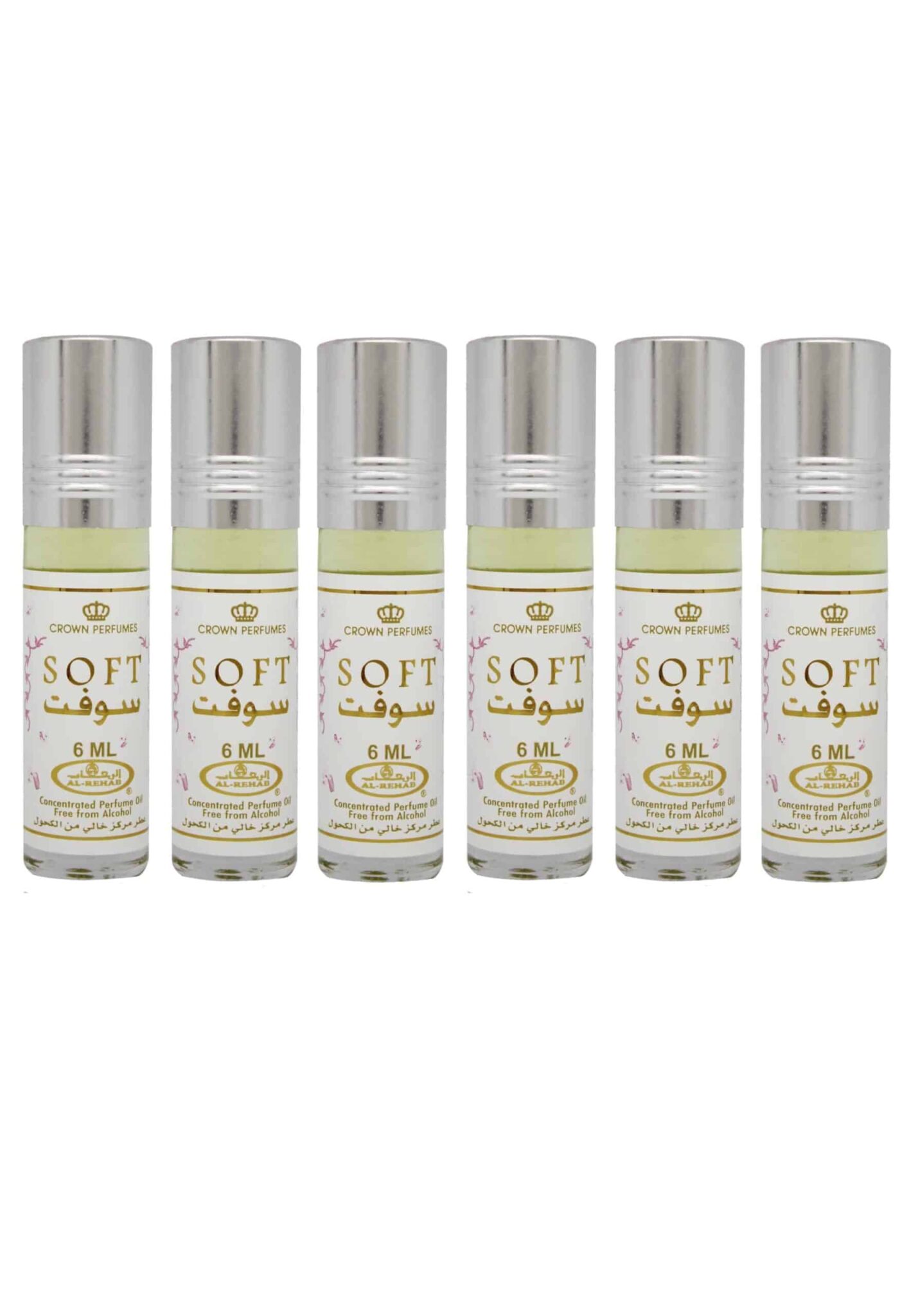 Lot de 6 Huile Parfumé SOFT 6 ML de Al Rehab, Pour Homme et Femme. Fragrance Unique Pour Longue Durée en Flacon Roll-on 6ML. Parfum halal sans alcool.